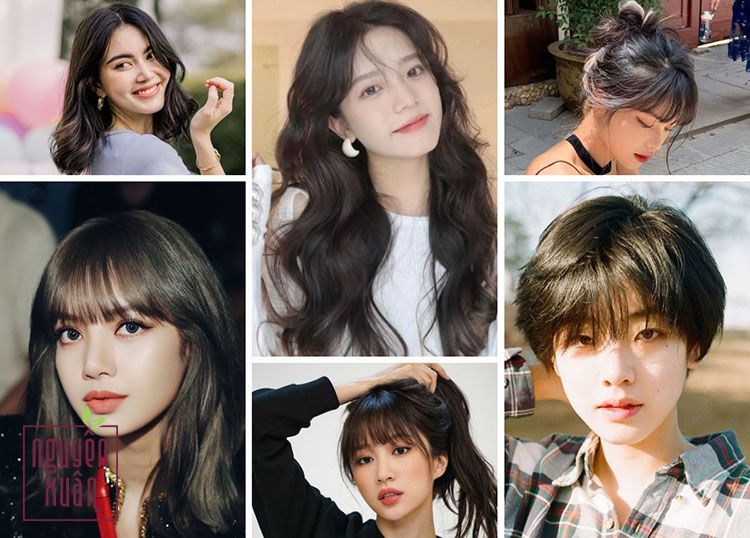 - Mái cong hoặc curtain bangs để mở rộng phần trán