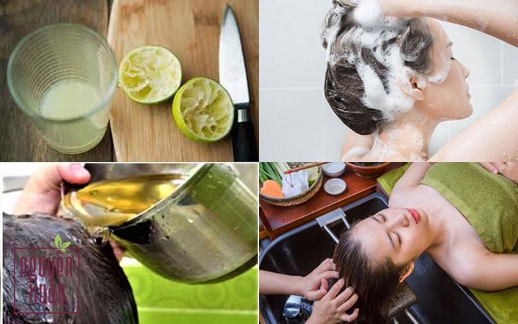 • Gội đầu sạch bằng dầu gội dịu nhẹ, rồi dùng nước sả chanh để xả lại tóc.