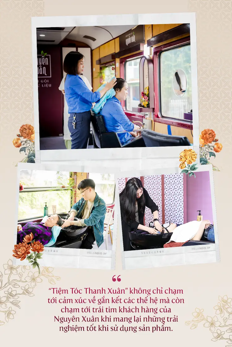 Khách hàng khi đến “Tiệm tóc Thanh Xuân” sẽ được trải nghiệm gội đầu cho người mình yêu thương với các sản phẩm của Nguyên Xuân, từ đó giúp họ nhớ về những giá trị truyền thống, hương xưa, nếp cũ. “Điểm chạm” có 1-0-2 này của Nguyên Xuân đã chinh phục được khách hàng cả về công dụng lý tính và những giá trị cảm xúc. Từ “Tiệm tóc thanh xuân” giúp gắn kết tình thân trong gia đình được xuất hiện giữa lòng Hà Nội và Hồ Chí Minh, cho đến “Tiệm tóc thanh xuân” gắn kết các O, các Mệ tại khu chợ hàng trăm năm tuổi xứ cố đô Huế, hành trình tôn vinh và lan tỏa những giá trị truyền thống Việt Nam của Nguyên Xuân dần được nâng tầm, mở rộng qua các năm.