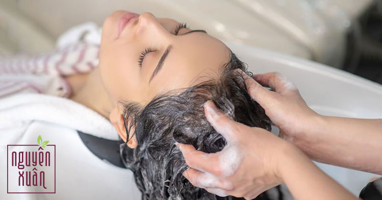 • Massage nhẹ nhàng trong 2–3 phút để loại bỏ bụi bẩn, không chà xát mạnh làm tổn thương da đầu.