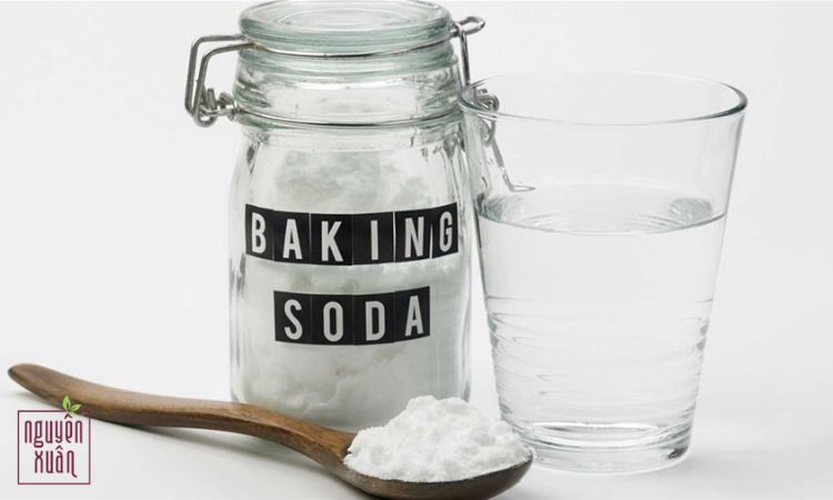 Chuẩn bị: 1–2 muỗng cà phê baking soda, 1 cốc nước ấm (khoảng 250ml).