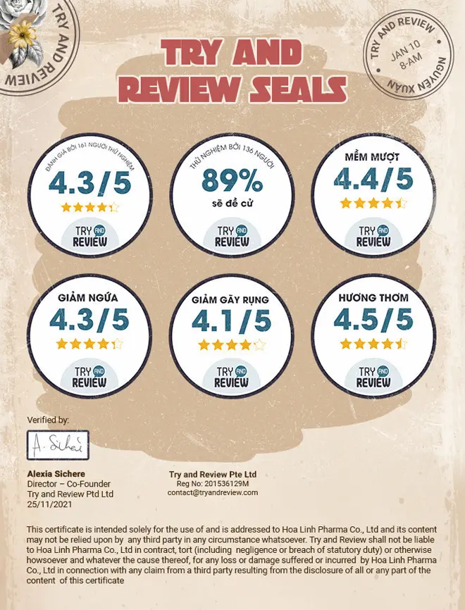 Bên cạnh các giải thưởng danh giá đó, Nguyên Xuân một lần nữa khẳng định được chất lượng của sản phẩm qua sự đánh giá của 144 trên 161 người đăng ký tham gia trải nghiệm thực tế trên Try and Review – cộng đồng đánh giá lớn nhất châu Á. Sản phẩm được chứng nhận đạt 4,3 / 5 thang điểm đánh giá và 89% người dùng đề cử.