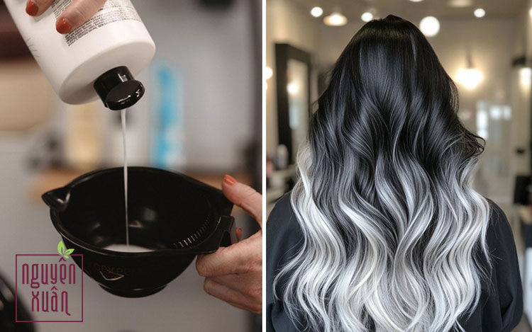 - Chỉ tẩy phần đuôi cần nhuộm, tránh lan lên thân tóc