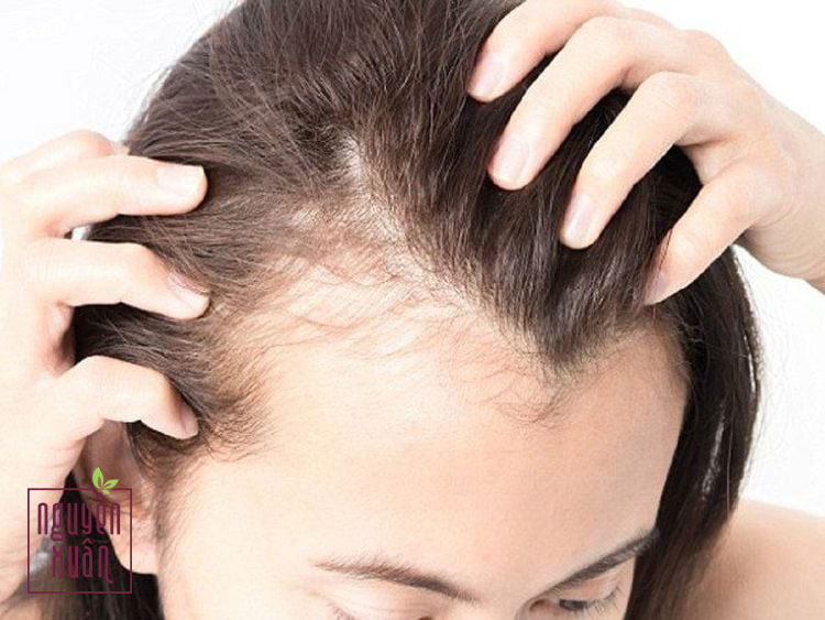 Dấu hiệu thường thấy là tóc mỏng dần, rụng nhiều hơn bình thường, mọc chậm hoặc sợi tóc yếu.